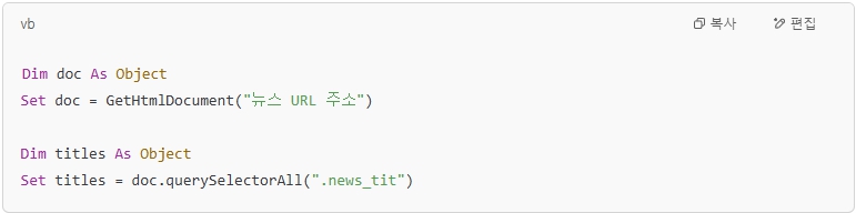 - 예시 클래스명: .news_tit, .api_txt_lines