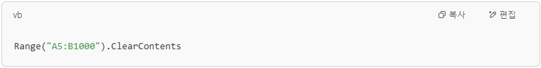 이렇게 하면 A5~B1000 범위에 있는 내용이 한 번에 삭제됩니다.